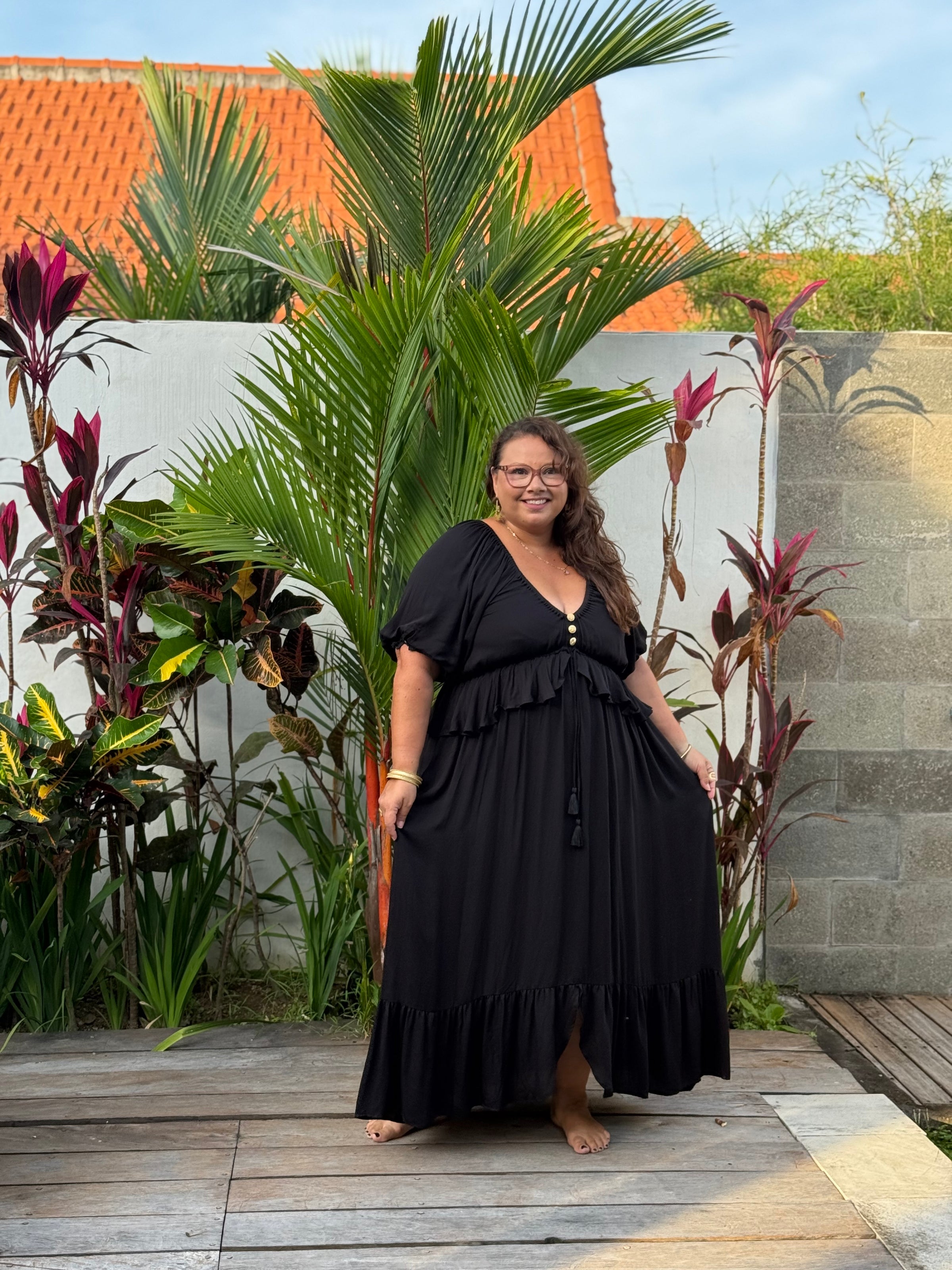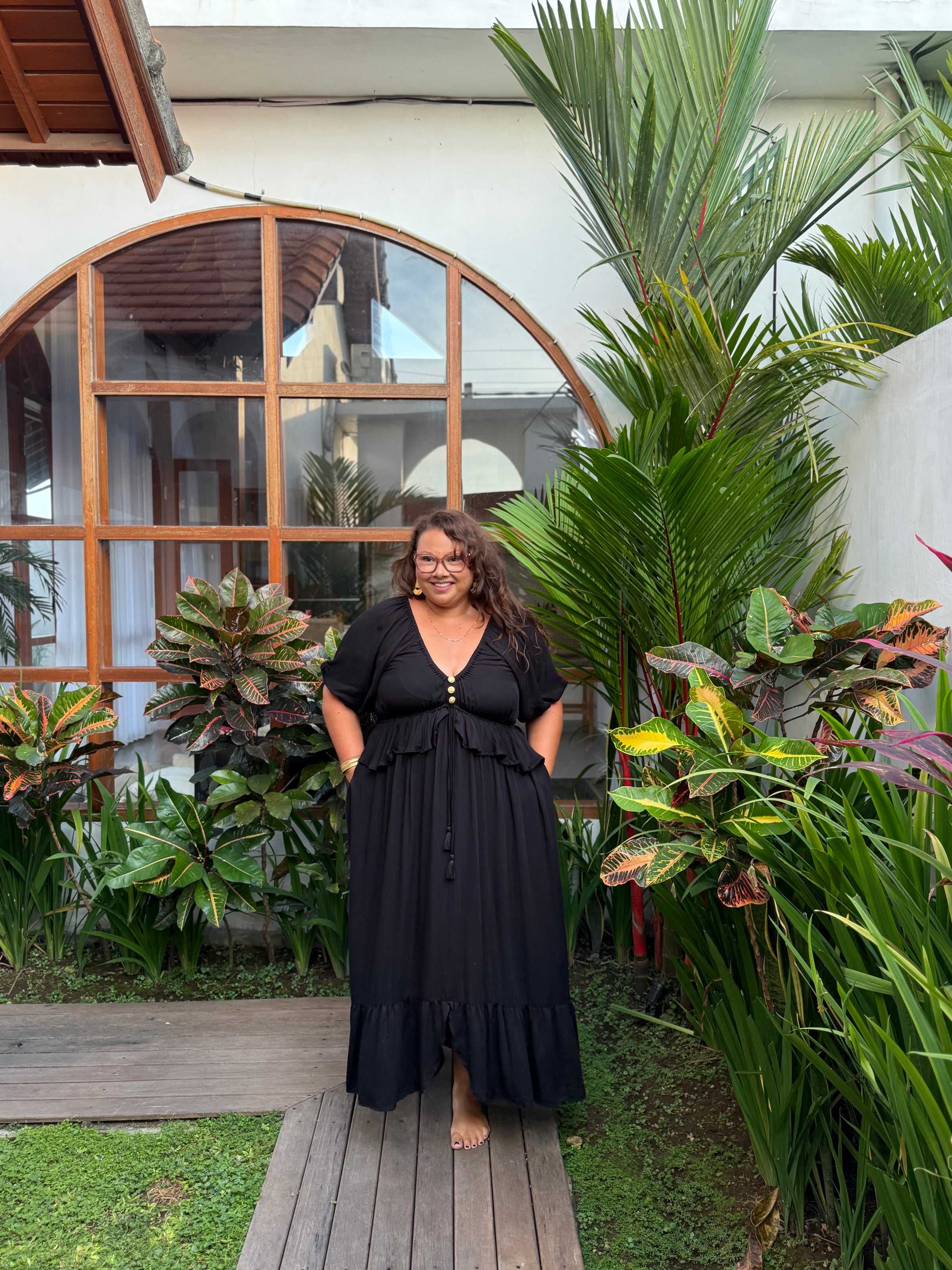 Soft, romantic and effortlessly elevated — the Kahli Maxi takes the silhouette you already love and transforms it into a full-length, feminine moment. With her gentle neckline, softly elasticated sleeves and bias-cut peplum that shapes beautifully under the bust, she drapes with that dreamy, fluid movement Mama Mane is known for.