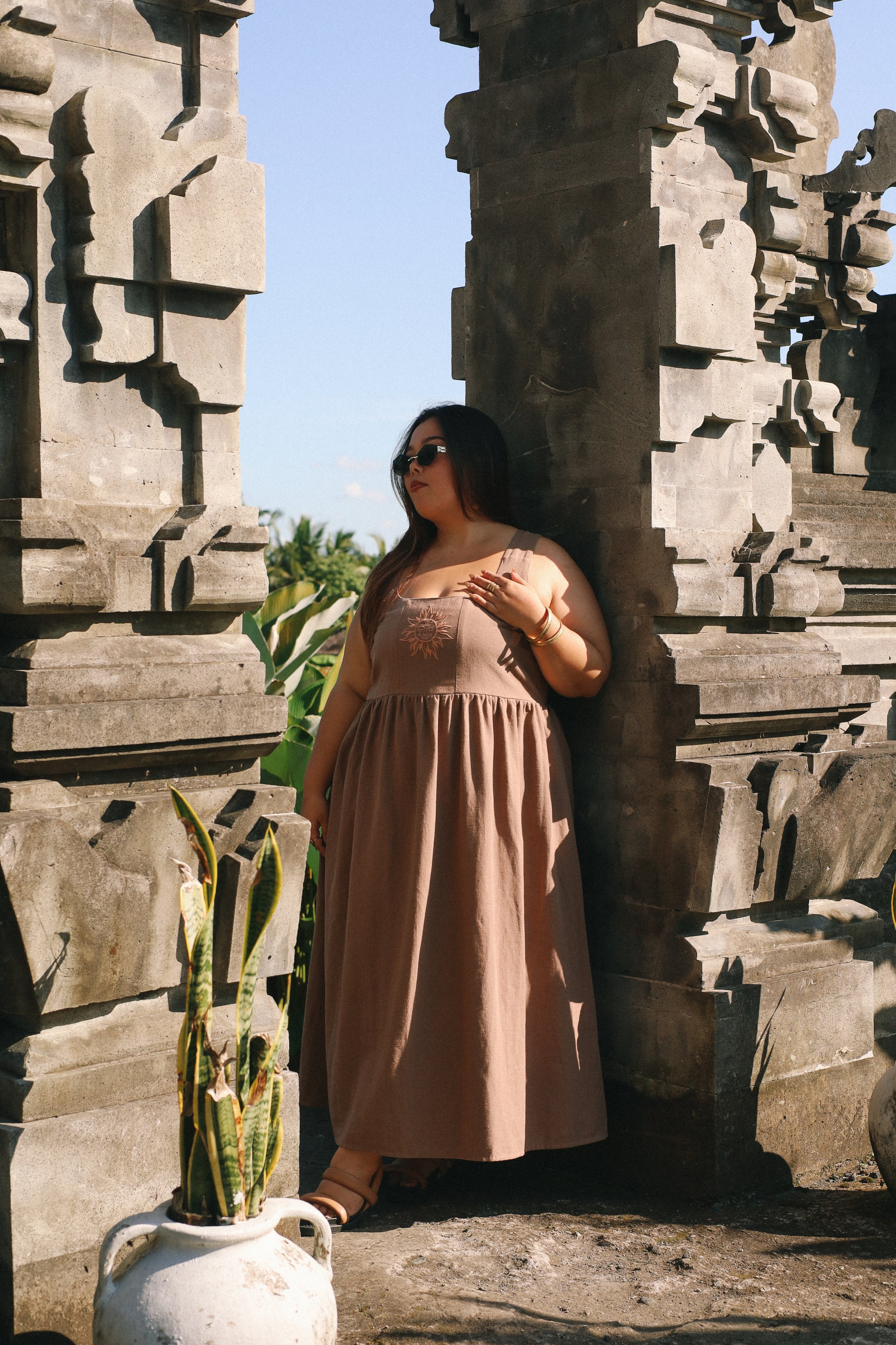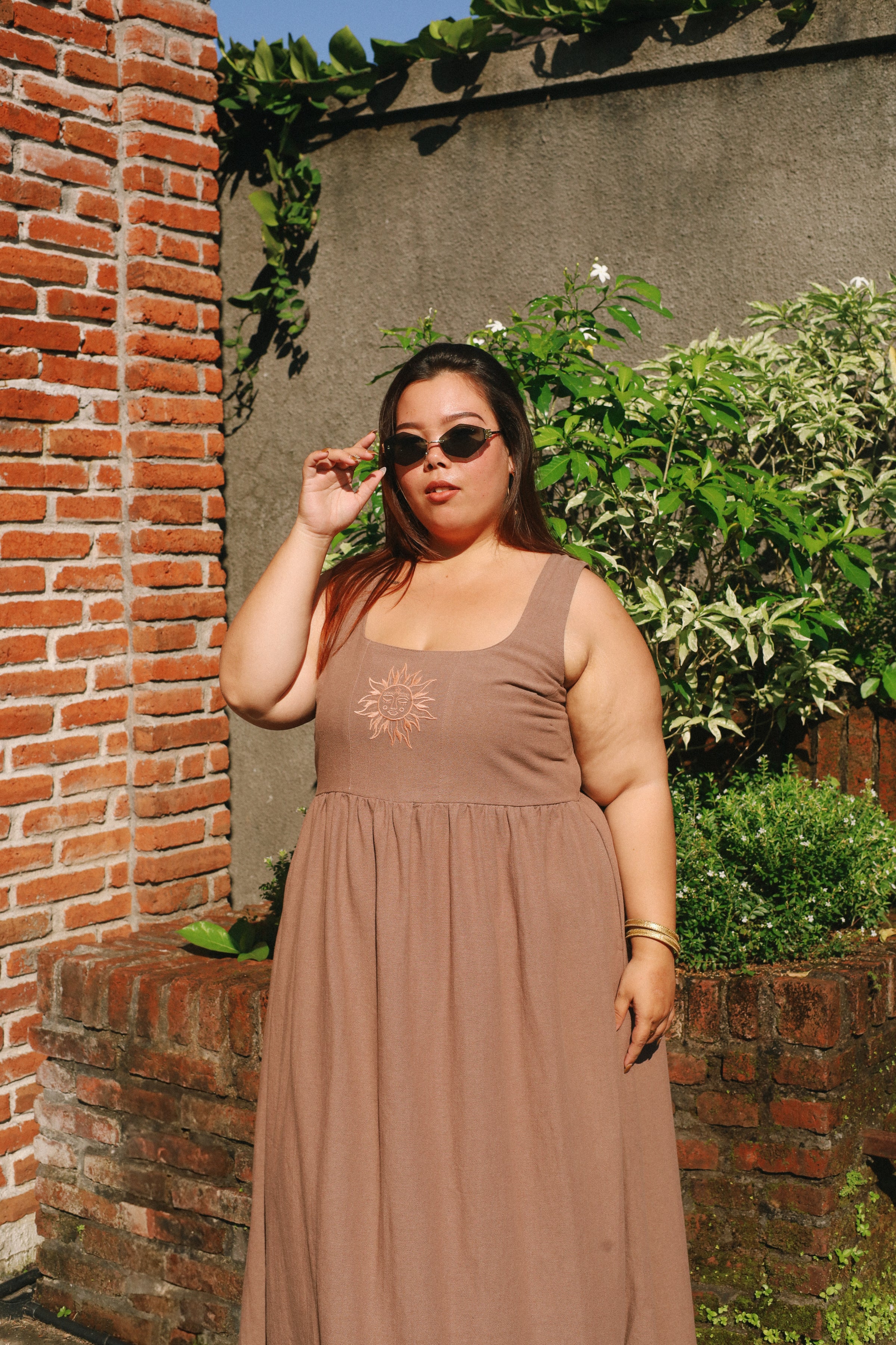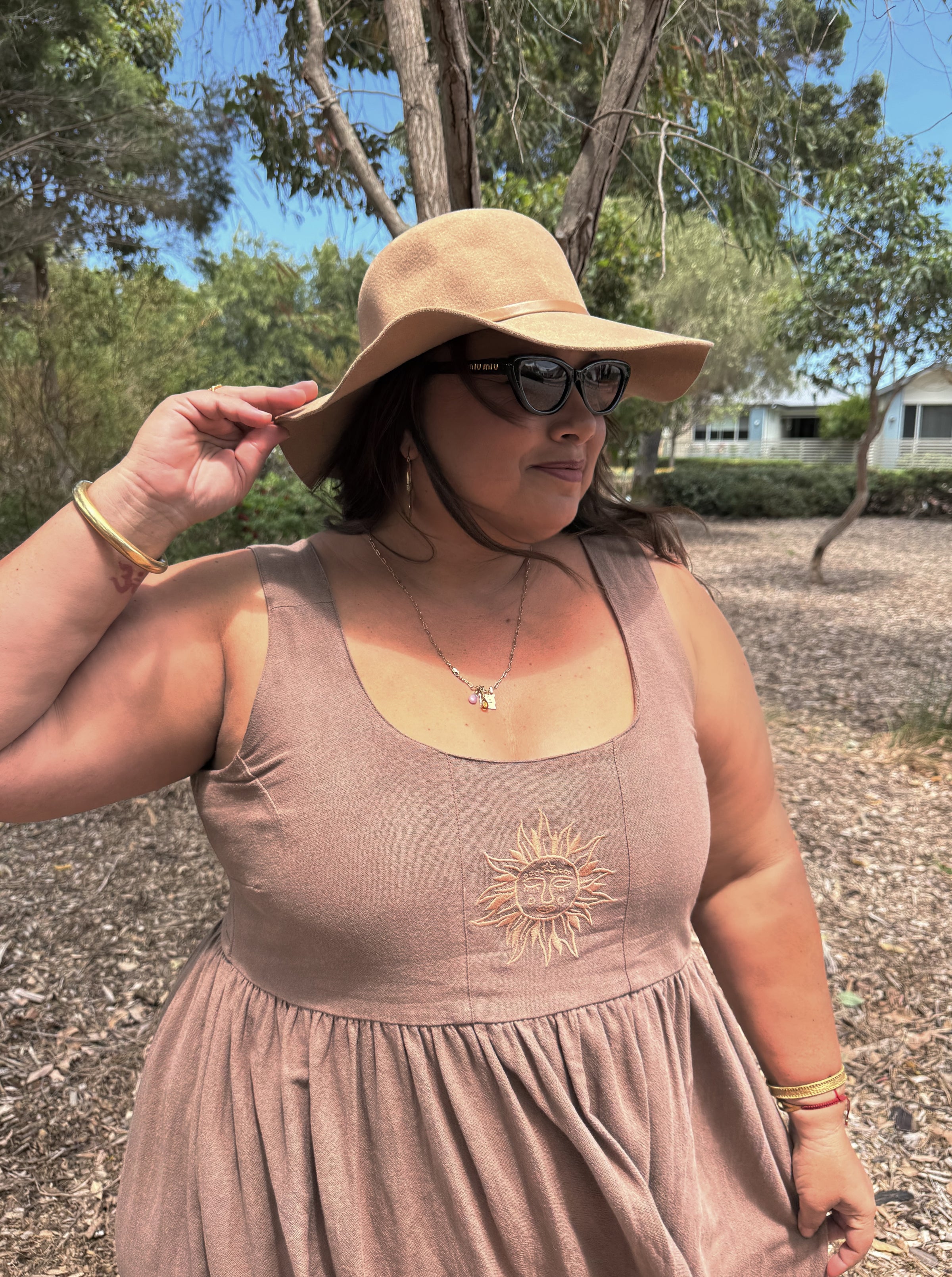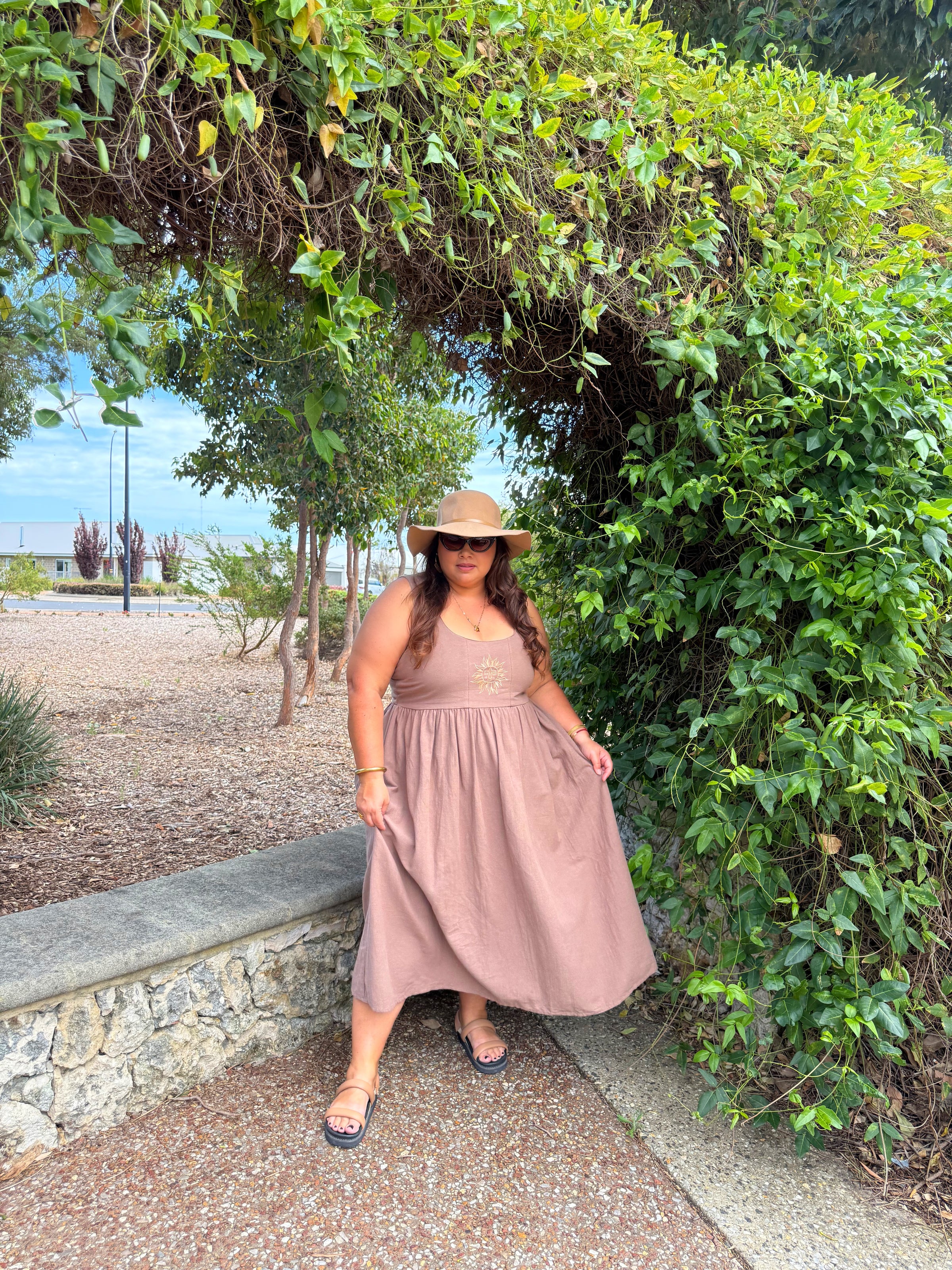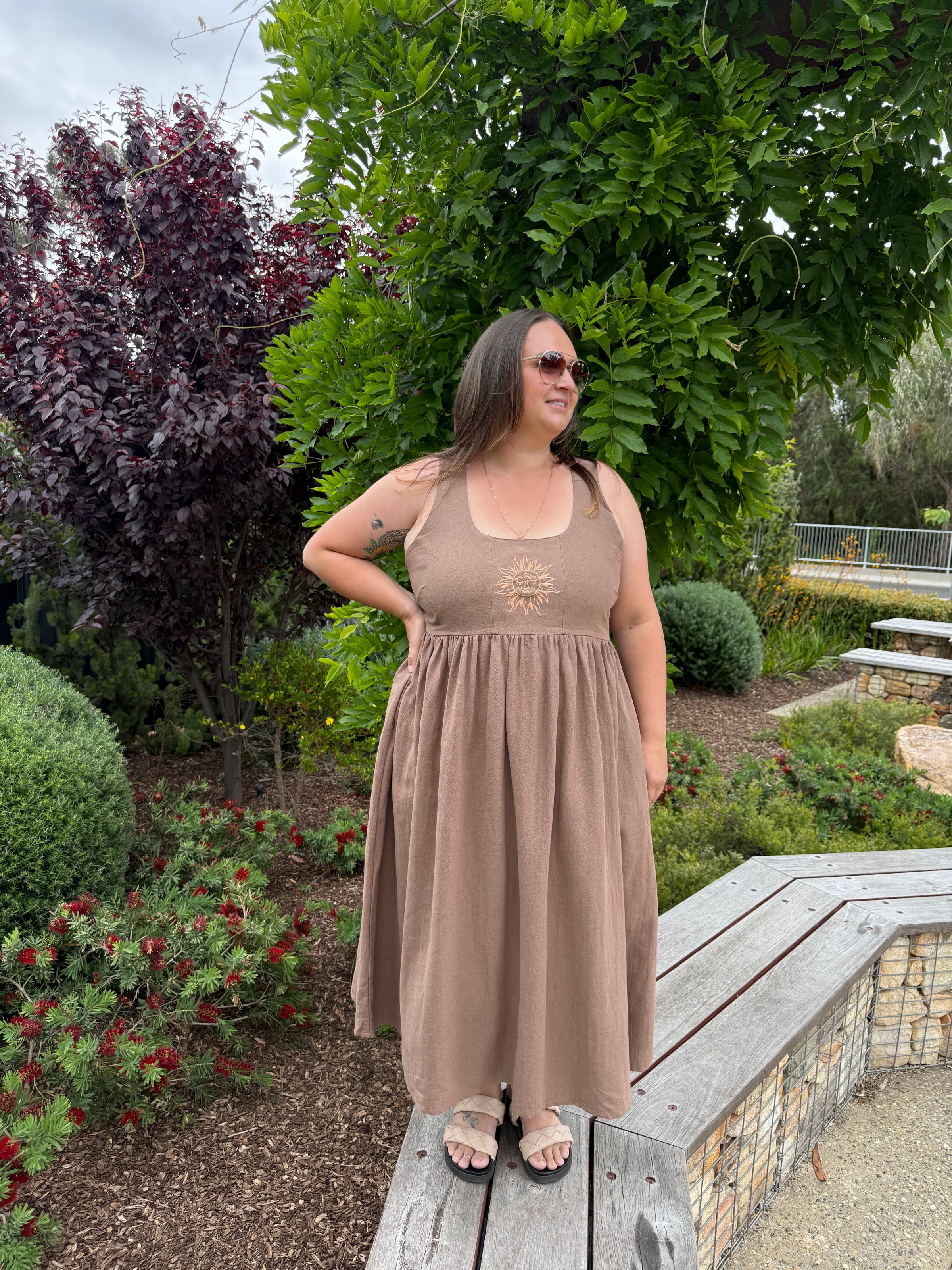 At the centre of this design is our hand-drawn sun embroidery with a face — a symbol of stepping into your own light, choosing joy, and embracing your true essence. With pockets (always) and a timeless midi length, the Meika Midi blends artistry with wearable summer beauty.