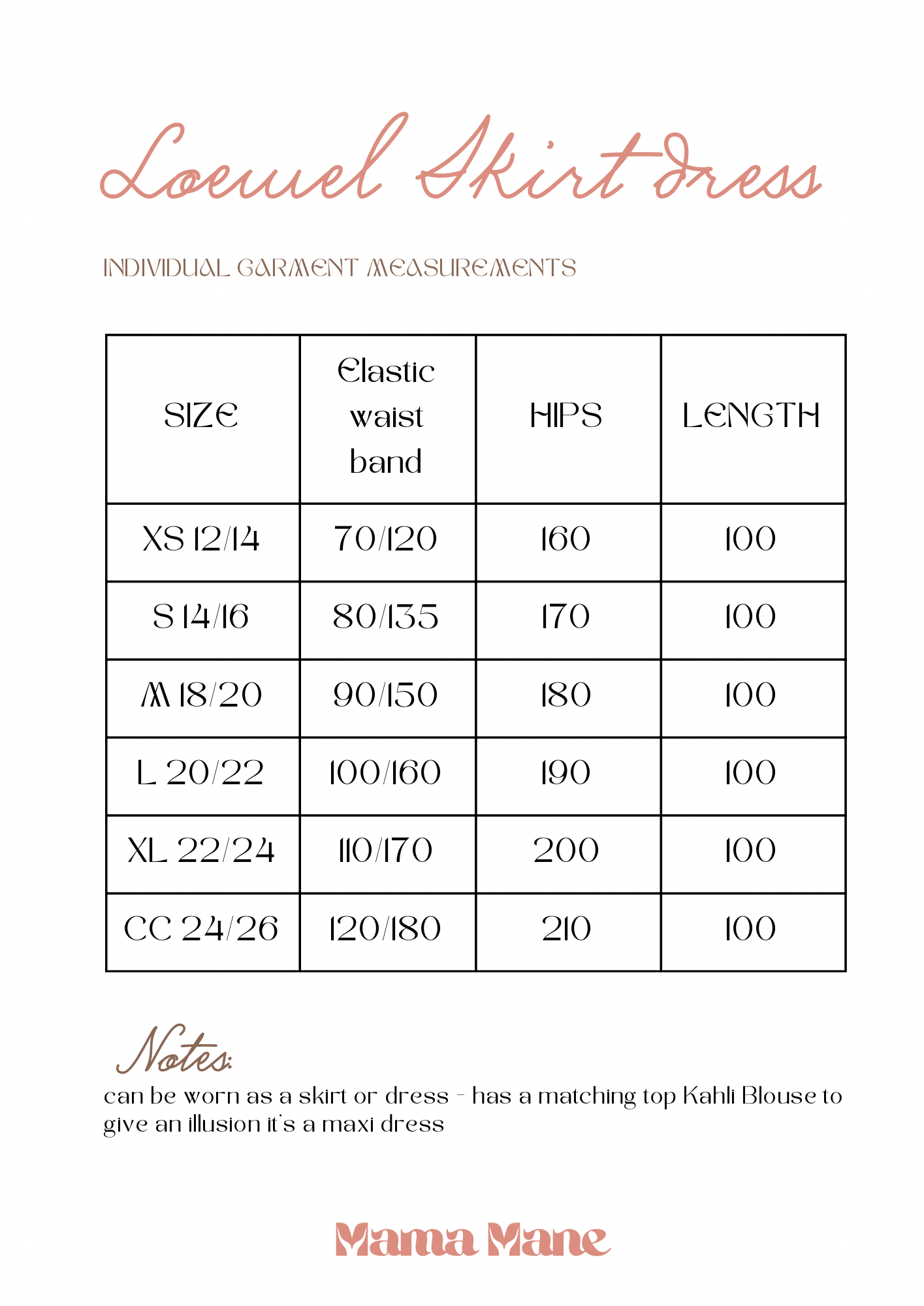 Imagine slipping into a skirt that moves with you — soft, effortless, and feminine. The Loewel is where comfort meets creativity. Designed for curvy queens who love versatility, she transforms from a flowing A-line maxi skirt into a dreamy strapless dress with a seperate elasticated band to cinch in the waist. Whether worn on the waist for a relaxed boho vibe or an empire waist line for an hourglass silhouette, the Loewel lets you play, style, and create your own story.